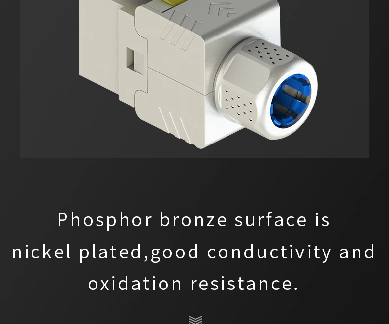 5. Copper steel alloy clamping terminals: Pierce the out cover easily, ensuring the stable contact of the ethernet cable.